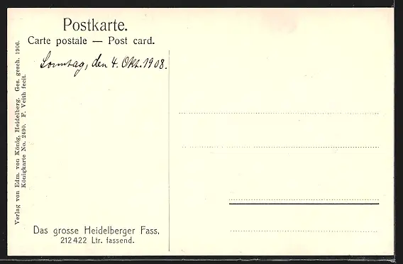 alte Ansichtskarte, ungelaufen, datiert 1908, guter Zustand