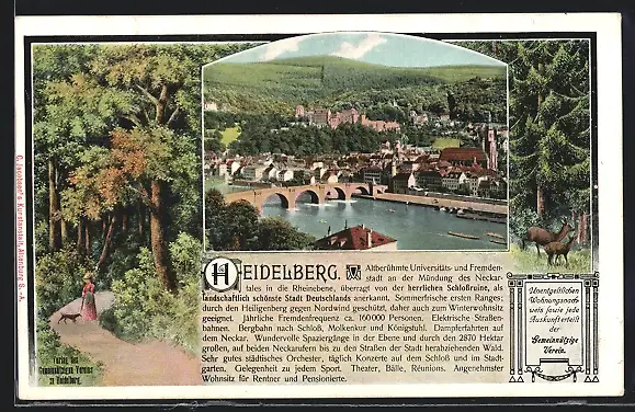 AK Heidelberg, Ortsansicht mit Wald umrahmt