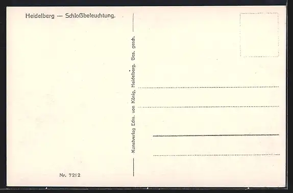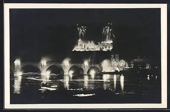 AK Heidelberg, Schloss in der Nacht mit Beleuchtung