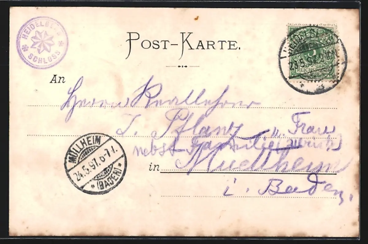 alte Ansichtskarte, gelaufen 1897, Eckknick li. unten, guter Zustand