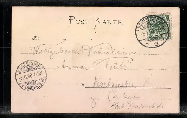 alte Ansichtskarte, gelaufen 1898, Stempelspur, guter Zustand
