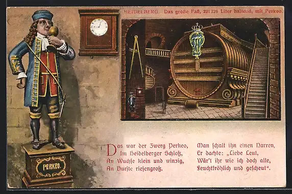 AK Heidelberg, das grosse Fass, der Zwerg Perkeo