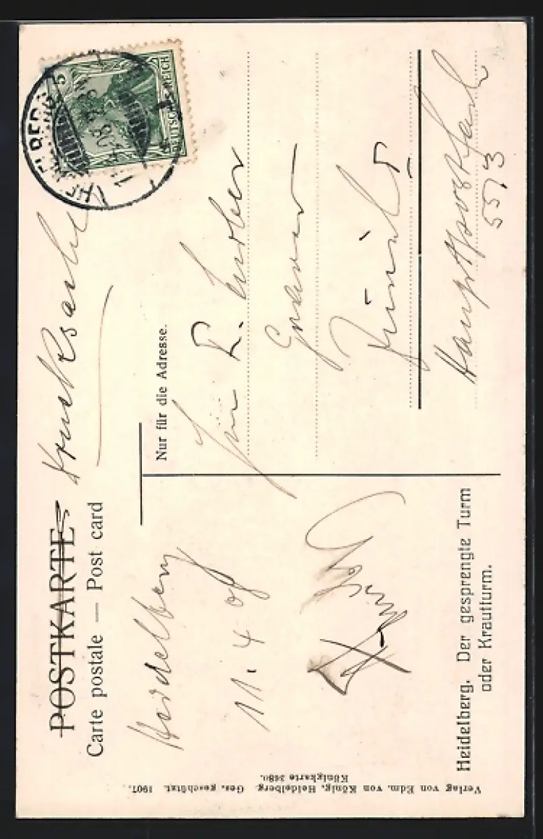 alte Ansichtskarte, gelaufen 1908, guter Zustand