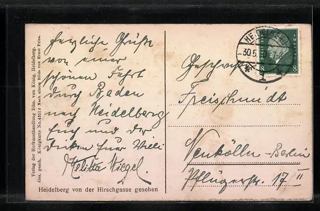 alte Ansichtskarte, gelaufen 1930, guter Zustand