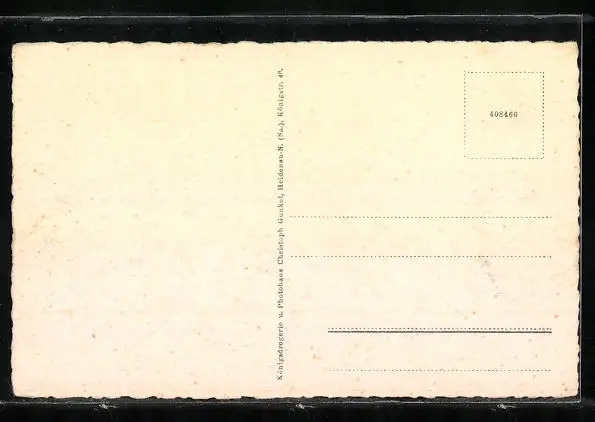 Personenbezogene Daten auf der Rückseite der Karte wurden durch blauen Textmarker unkenntlich gemacht. Die blauen Stellen sind auf die Vorderseite durchgeweicht und wirken sich negativ auf das Postkartenfoto aus