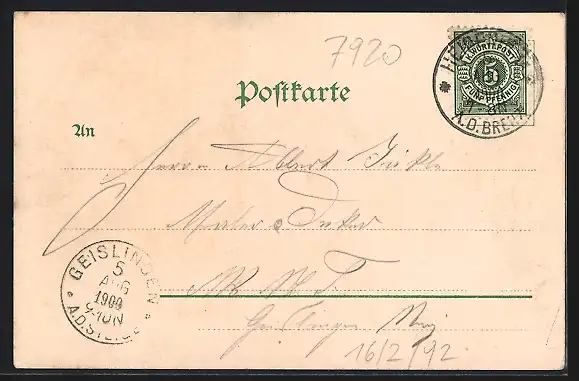 alte Ansichtskarte, gelaufen 1900, guter Zustand