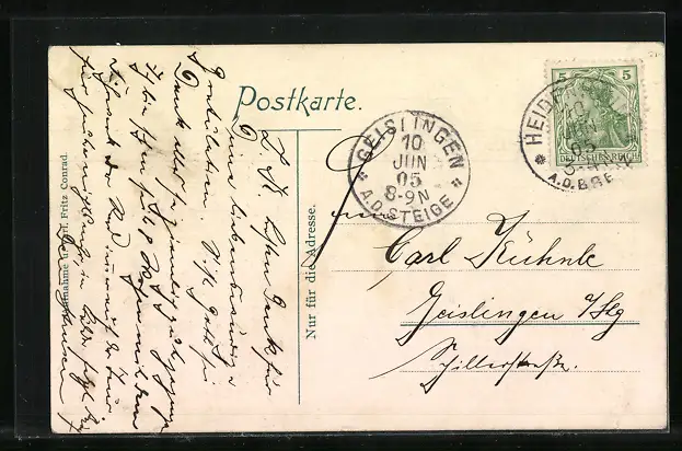 gelaufen 1905, Abriebspur li. unten, Stempelspur, guter Zustand