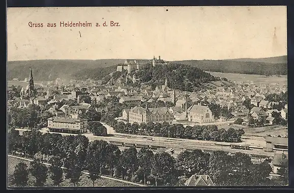 AK Heidenheim a. d. Brz., Ortsansicht mit Bahnhof