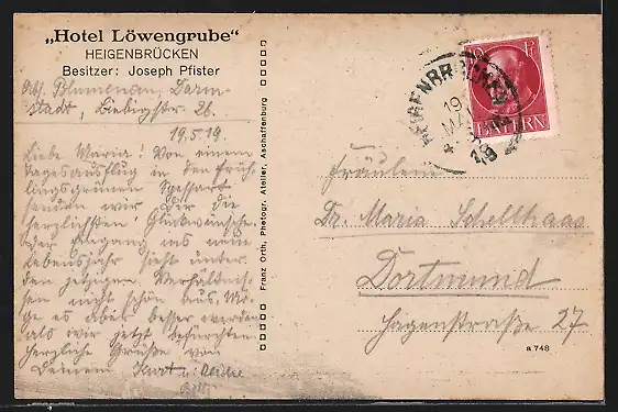 AK Heigenbrücken, Hotel Löwengrube, Bes. J. Pfister