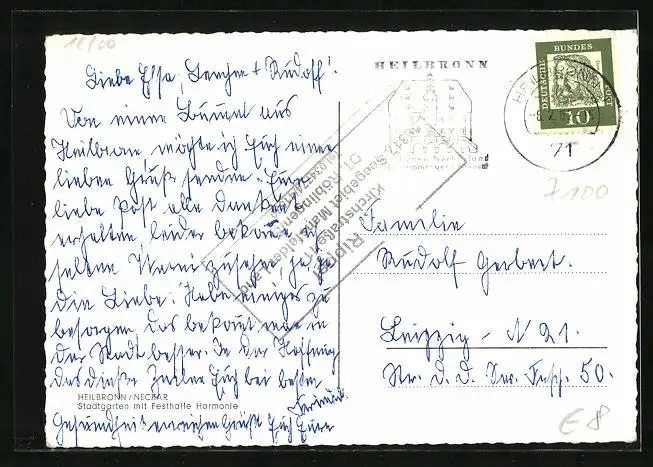 AK Heilbronn /Neckar, Stadtgarten mit Festhalle Harmonie