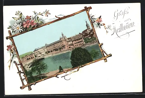 AK Heilbronn, Ortspartie mit Brücke am Wasser