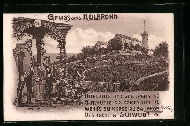 AK Heilbronn, Ortspartie mit Weinberg und Weinbauern
