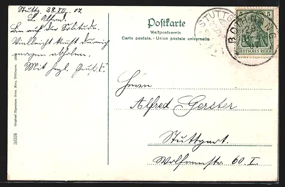 alte Ansichtskarte, gelaufen 1907, guter Zustand
