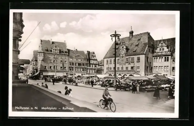 AK Heilbronn a. N., Marktplatz mit Rathaus und Marktständen