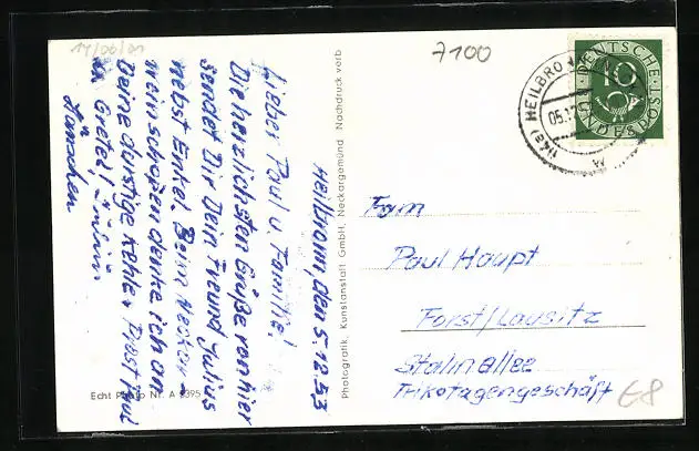 alte Ansichtskarte, gelaufen 1953, guter Zustand