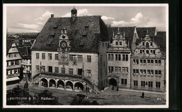 AK Heilbronn a. N., Rathaus mit Denkmal