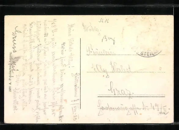 alte Ansichtskarte, gelaufen 1923, Briefmarke entfernt, rückseitig Klebe- und Papierreste, rückseitig Oberflächenschaden, guter Zustand