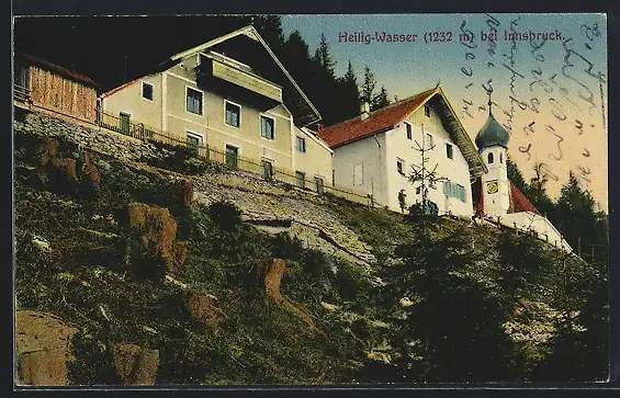 AK Heilig-Wasser bei Innsbruck, Ortspartie mit Kirche