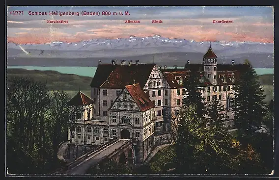 AK Heiligenberg /Baden, Schloss Heiligenberg mit Altmann, Säntis und Churfirsten