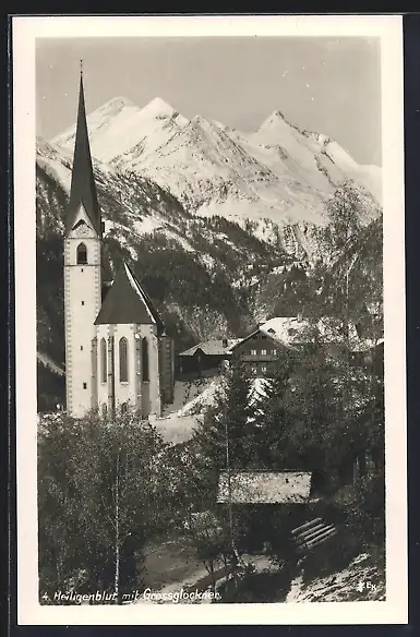 AK Heiligenblut, Teilansicht mit Kirche gegen Grossglockner