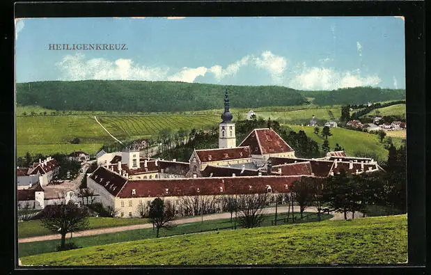 AK Heiligenkreuz, Ortsansicht mit Feldern aus der Vogelschau