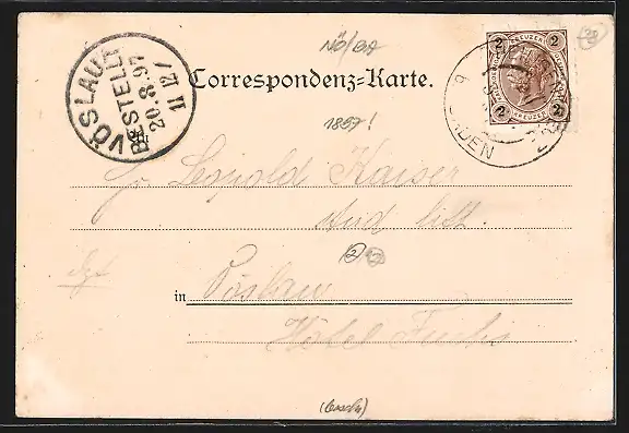 alte Ansichtskarte, gelaufen 1897, guter Zustand