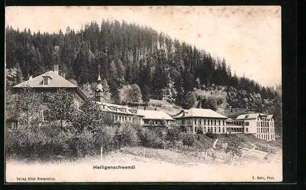 AK Heiligenschwendi, Ortsansicht mit Bäumen