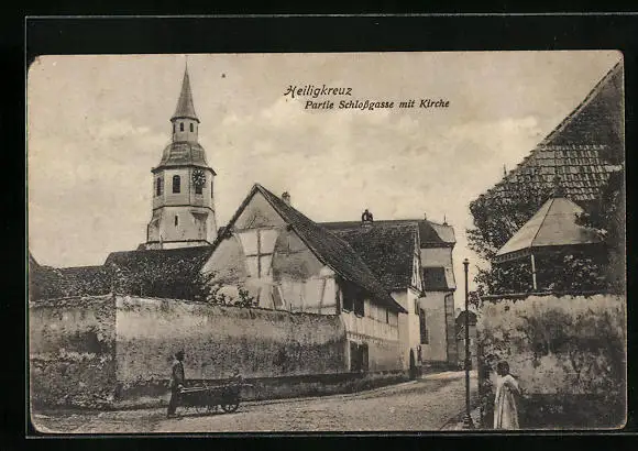 AK Heiligkreuz, Partie Schlossgasse mit Kirche