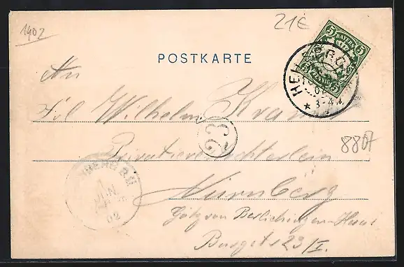 alte Ansichtskarte, gelaufen 1902, guter Zustand