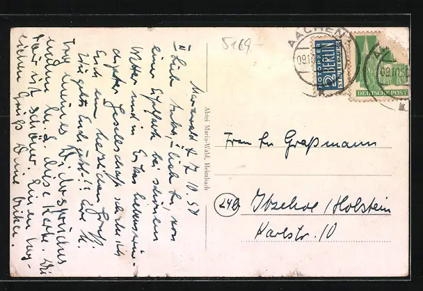 alte Ansichtskarte, gelaufen 1950, kleiner Randschaden unten, guter Zustand