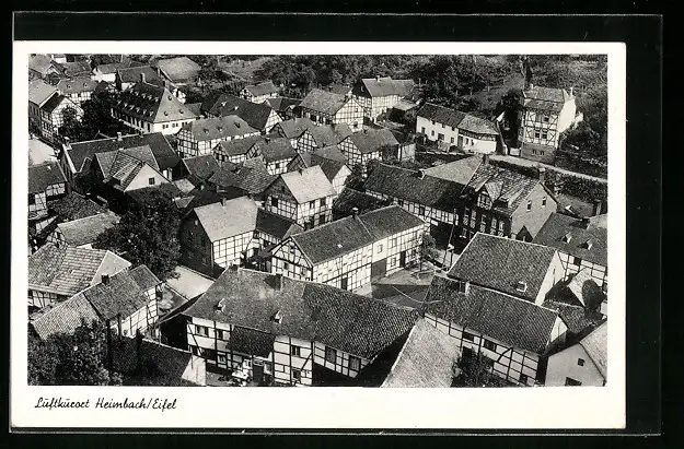 AK Heimbach /Eifel, Fachwerkhäuser im Luftkurort aus der Vogelschau