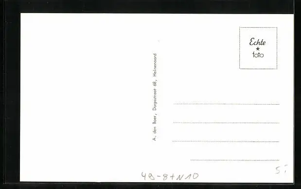 Personenbezogene Daten auf der Rückseite der Karte wurden durch blauen Textmarker unkenntlich gemacht. Die blauen Stellen sind auf die Vorderseite durchgeweicht und wirken sich negativ auf das Postkartenfoto aus