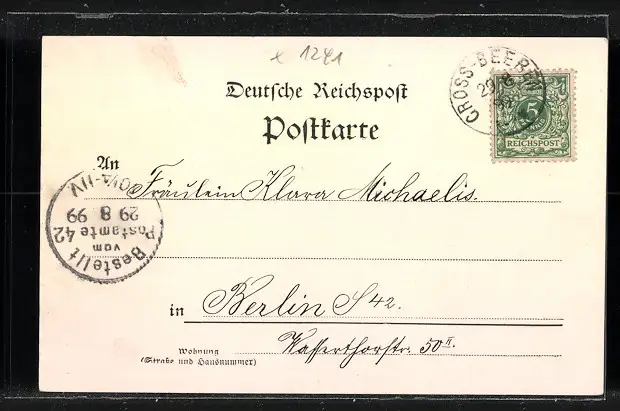 alte Ansichtskarte, gelaufen 1899, guter Zustand
