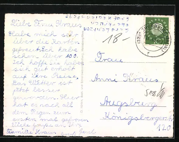 alte Ansichtskarte, gelaufen 1960, Stempelspur, guter Zustand