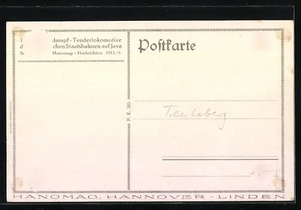 AK Heissdampf-Tenderlokomotive der Holländischen Staatsbahnen auf Java, HANOMAG