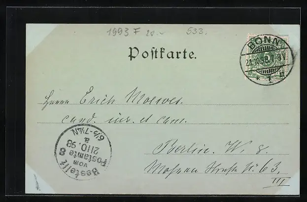 alte Ansichtskarte, gelaufen 1898, guter Zustand