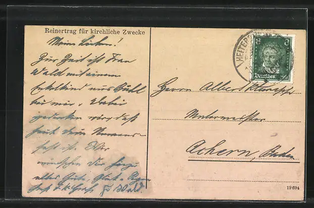 alte Ansichtskarte, gelaufen, Eckknick li. oben, Stempelspur, sonst guter Zustand