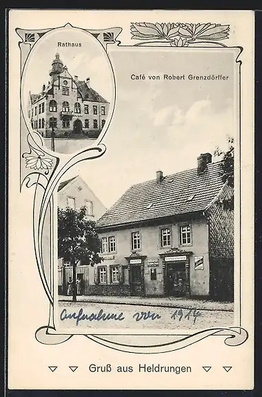 AK Heldrungen, Café von Robert Grenzdörffer, Rathaus