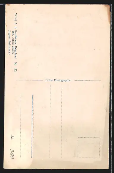 Personenbezogene Daten auf der Rückseite der Karte wurden durch blauen Textmarker unkenntlich gemacht. Die blauen Stellen sind auf die Vorderseite durchgeweicht und wirken sich negativ auf das Postkartenfoto aus