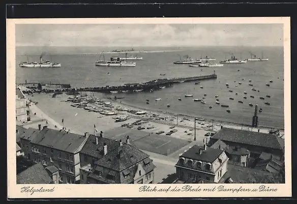 AK Helgoland, Blick auf die Reede mit Dampfer und Düne