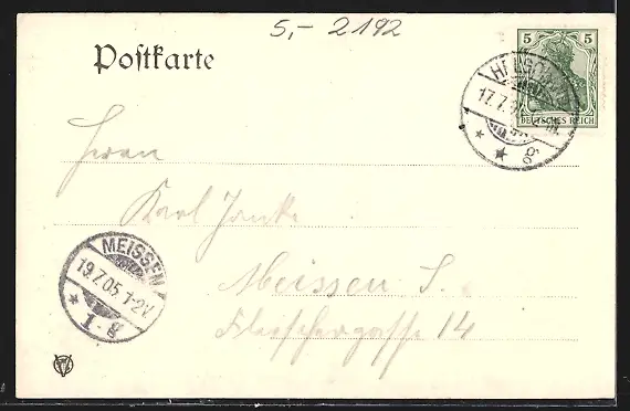 alte Ansichtskarte, gelaufen 1905, Stempelspur, guter Zustand
