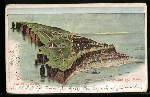 AK Helgoland, Die Insel und Düne aus der Vogelschau