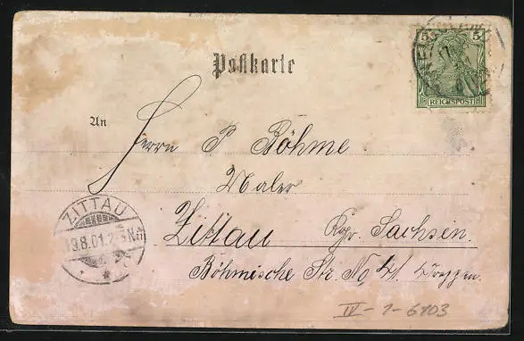 alte Ansichtskarte, gelaufen 1901, Eckknick rechts unten, guter Zustand