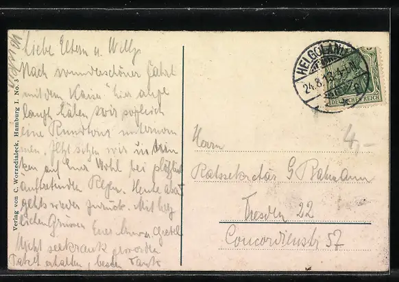 gelaufen 1913, Eckknick li. oben, Stempelspur, guter Zustand