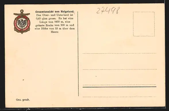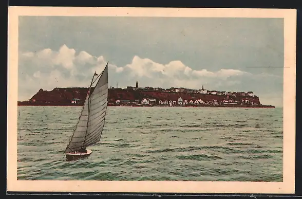 AK Helgoland, Gesamtansicht der Insel mit Segelboot