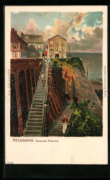 AK Helgoland, Grosse Treppe mit Passanten und Meerblick
