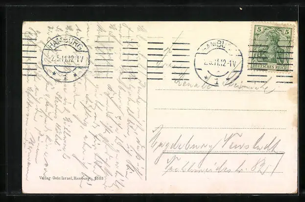 alte Ansichtskarte, gelaufen 1911, Stempelspur, guter Zustand