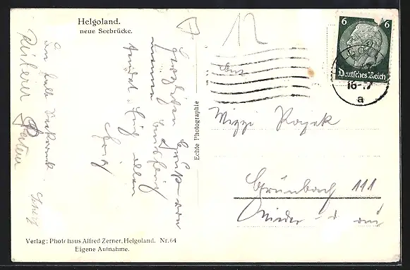 gelaufen 1939, Eckknicke oben, rückseitig Klebe- und Papierreste, rückseitig Oberflächenschaden, minimale Einrisse oben mittig