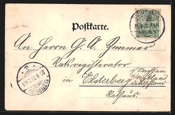 alte Ansichtskarte, gelaufen 1901, Bugspur re. oben, guter Zustand