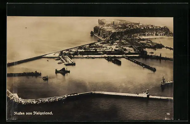 AK Helgoland, Ortsansicht mit Hafen aus der Vogelschau